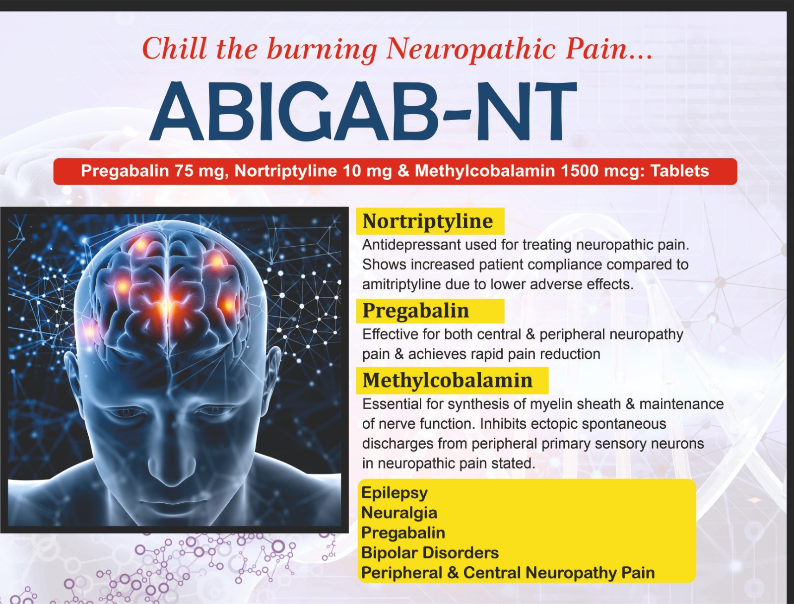 Abigab-NT Pregabalin 75mg, Nortriptyline 10mg & Methylcobalamin 1500mcg: Tablets